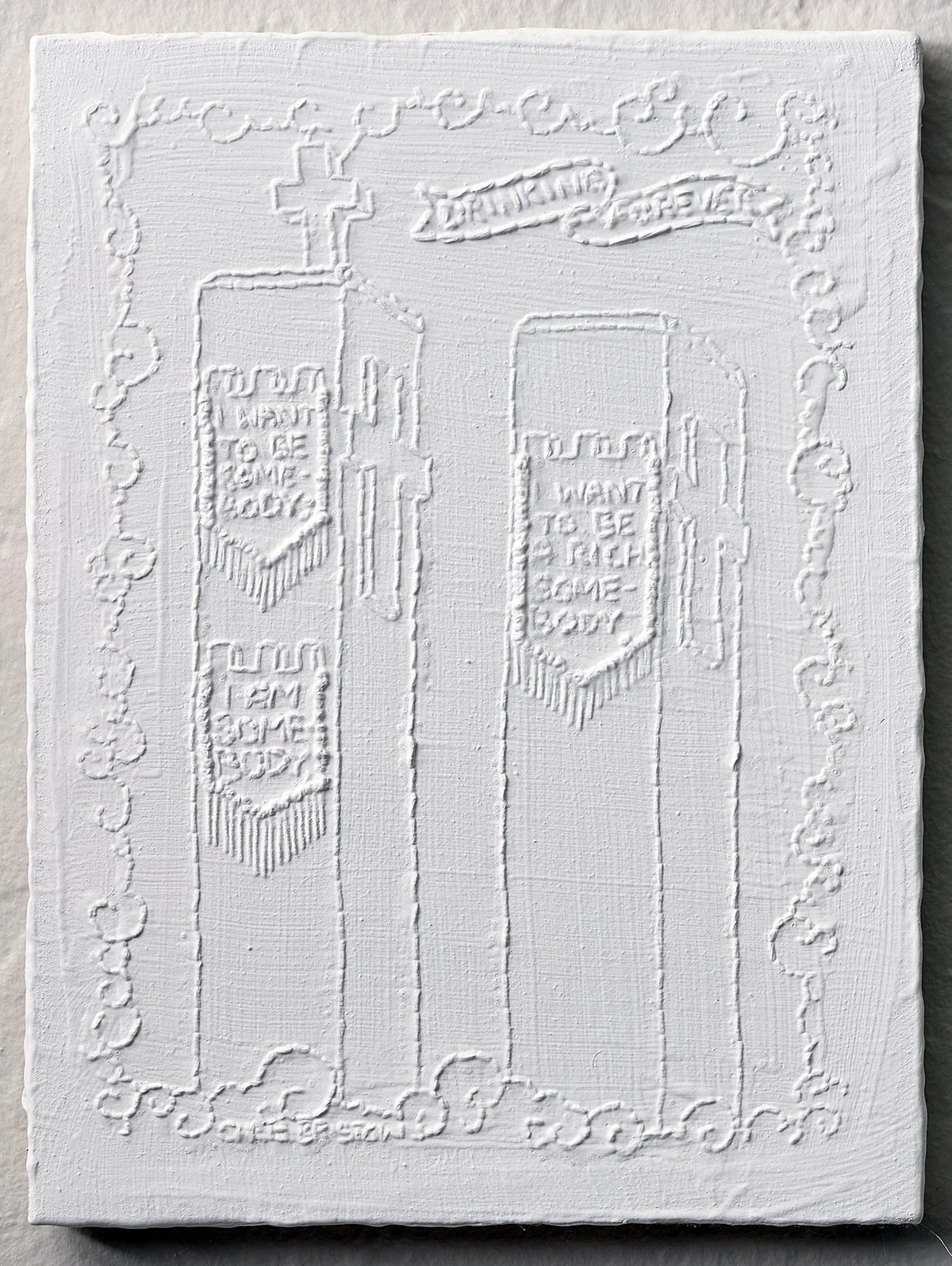 Chris Bristow, I Want to Be Somebody, 2025, acrylic and embroidery on canvas, 12.5 x 9.5 inches. Image courtesy of the artist.