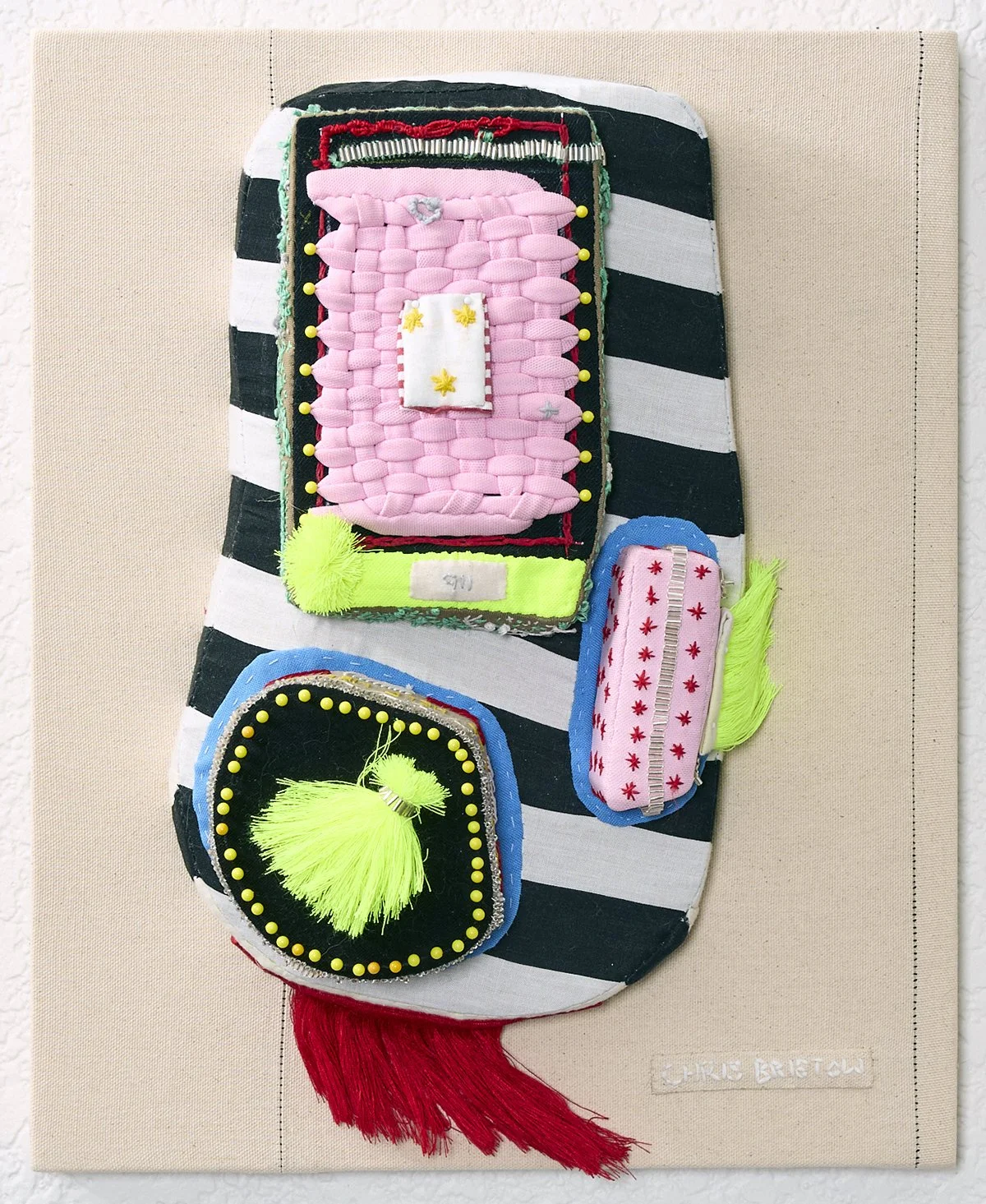 Chris Bristow, Selection, 2025, acrylic and embroidery on canvas, 12.5 x 9.5 inches. Image courtesy of the artist.