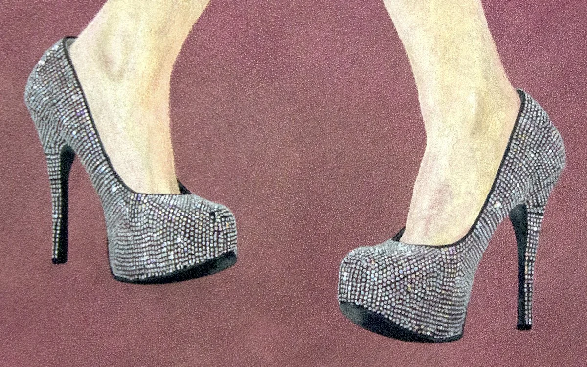 A detail view of Louis Trujillo's Fat, Femme, and Fierce, 2019, colored pencil on paper, 41.5 x 15 inches, from the Sissy Series. Image by Kamden Hilliard.