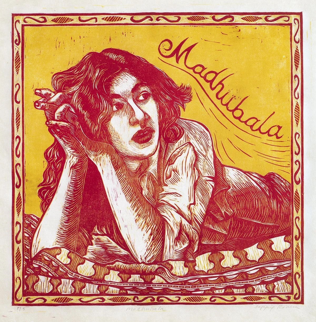 Julie Lapping Rivera, Madhubala, 2019, color reduction woodcut. Image courtesy of artist.