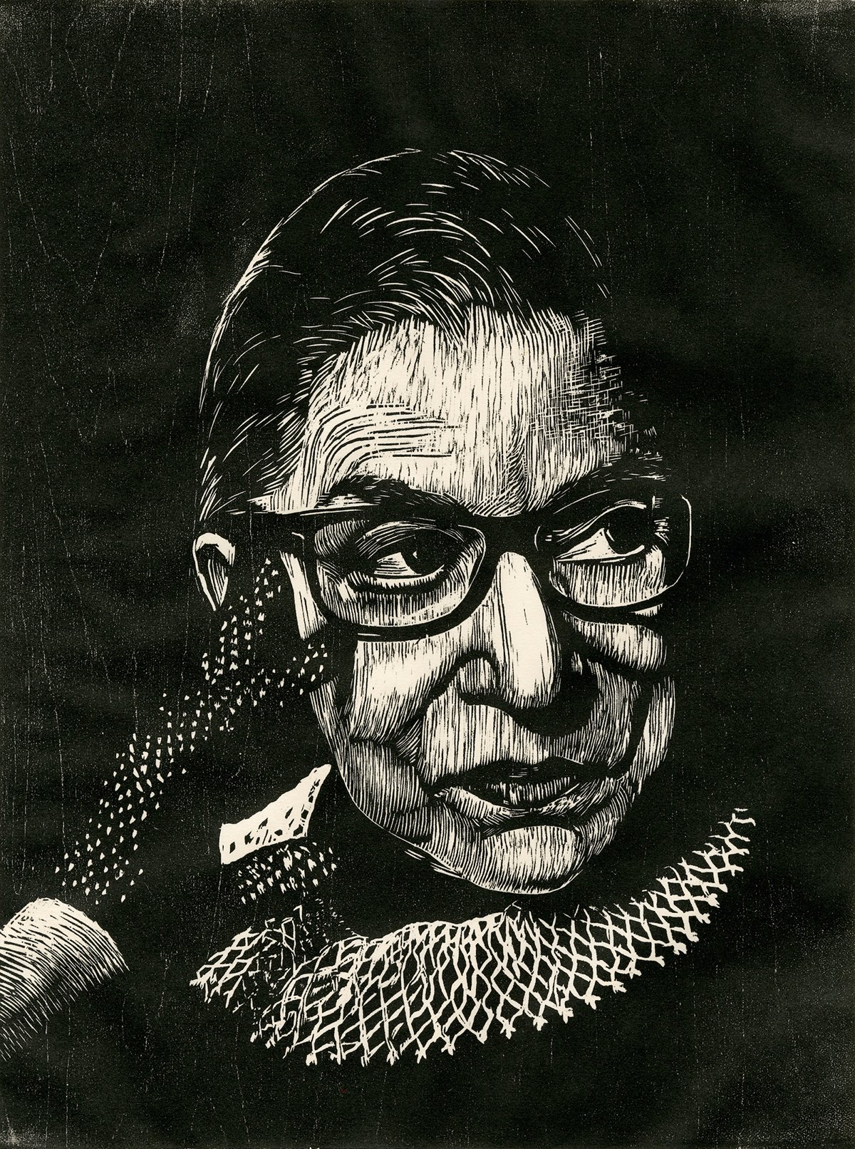 Julie Lapping Rivera, Ruth Bader Ginsberg, 2021, woodcut. Image courtesy of Loveland Museum.