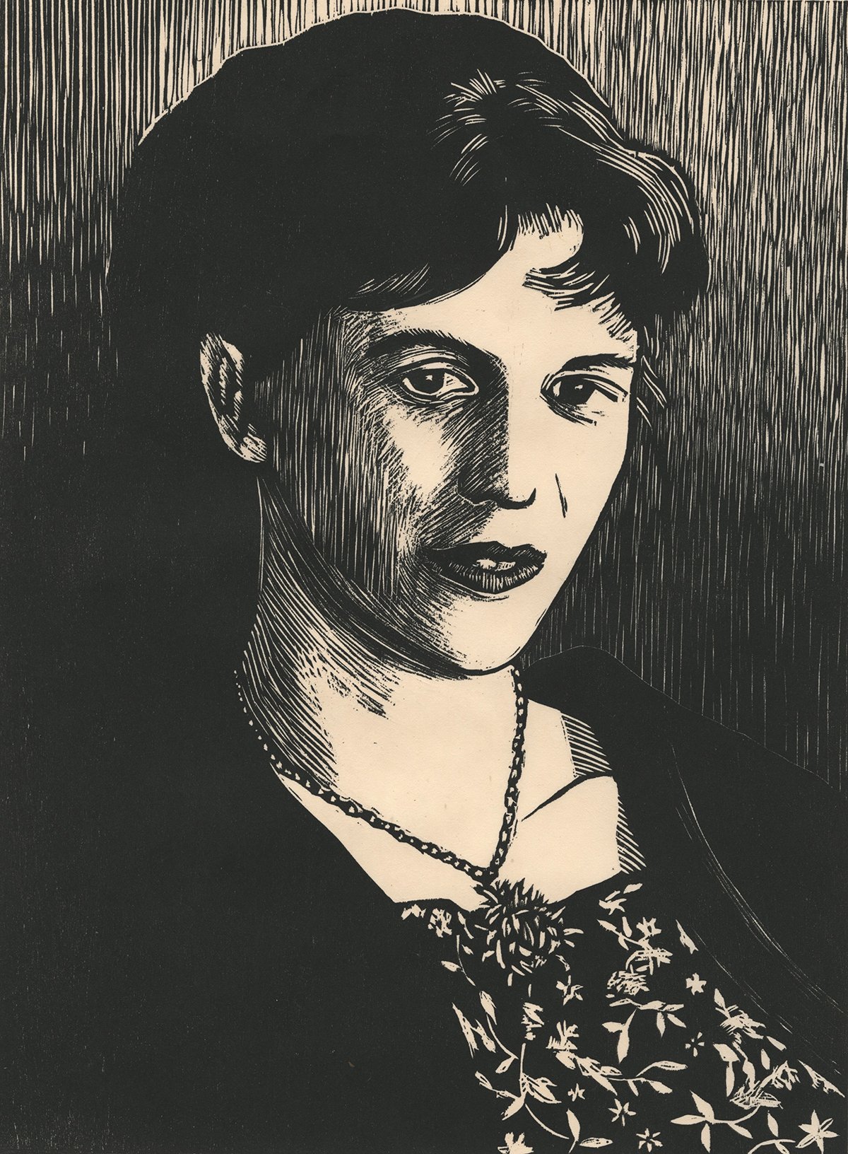 Julie Lapping Rivera, Nella Larsen, 2018, woodcut. Image courtesy of artist.