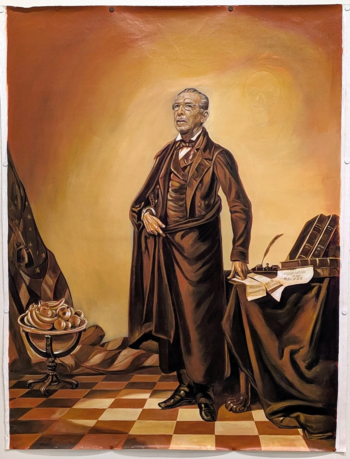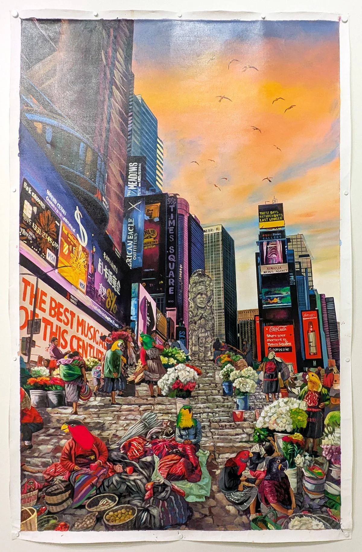 Alvaro Tzaj Yotz, A New Colossus / Un nuevo coloso, 2023, oil on canvas. Image by Maggie Sava.
