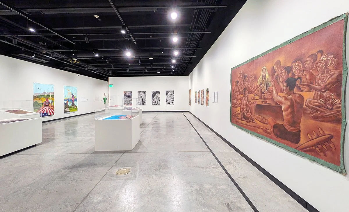 An installation view of Maya Guatemala and Us: Divergent Convergences at the Gregory Allicar Museum of Art. Image by Maggie Sava.