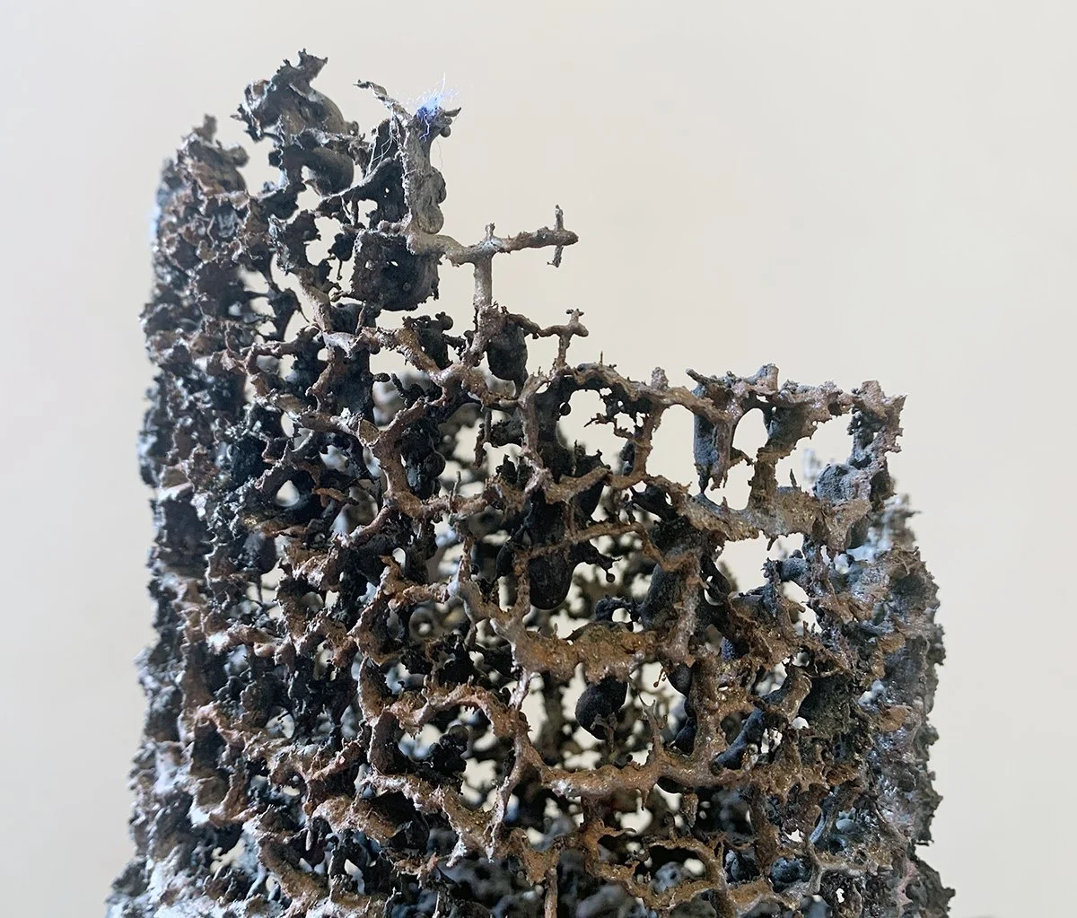 A detail view of Christopher Meyer’s Scotch Pine, 2014-2024, performance-based cast iron, 20 x 18 inches. Image by Parker Yamasaki.