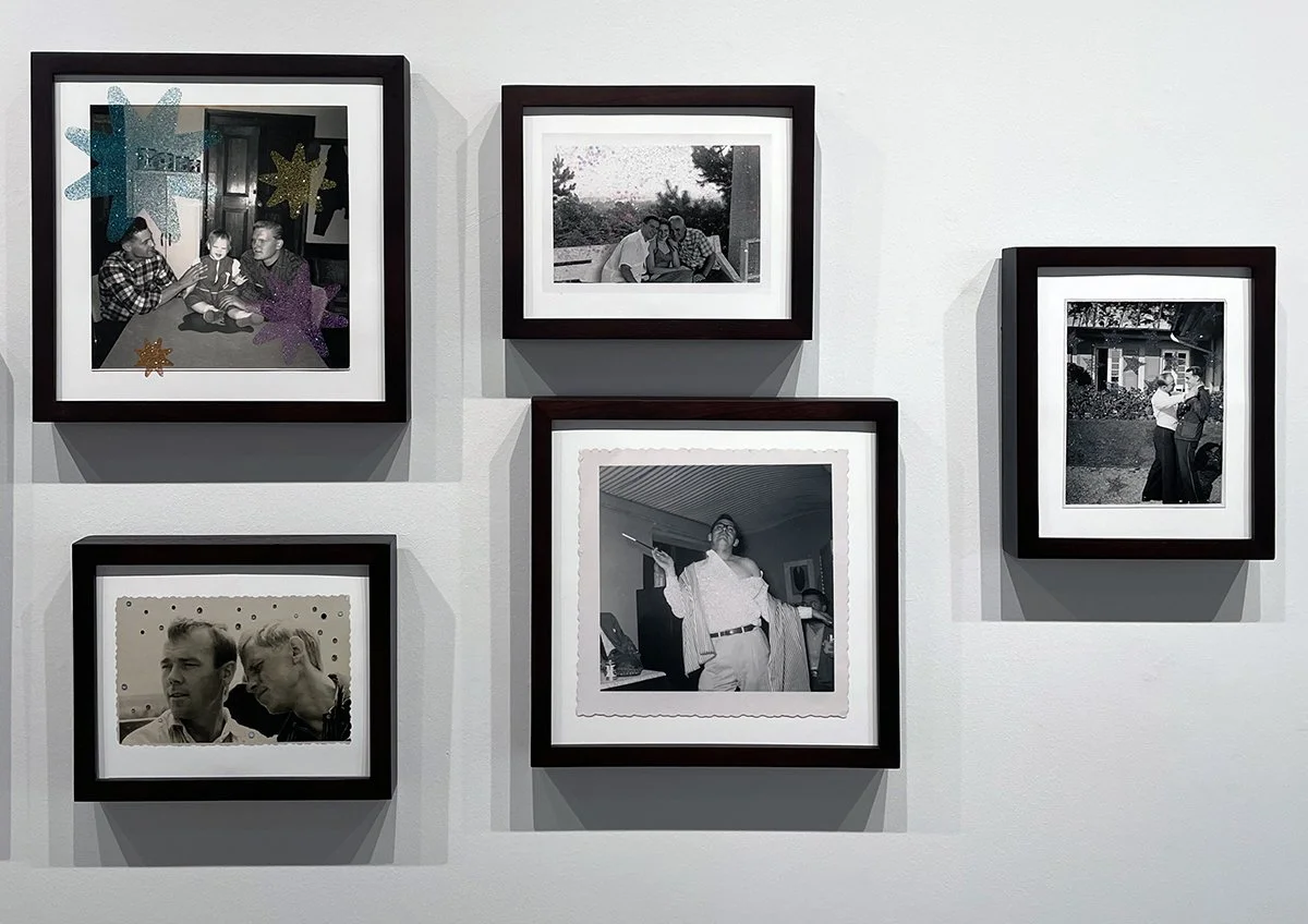 To these found vernacular images, Finley adds glitter and rhinestones, which the artist describes as “a nod to the long history of queer nightlife and drag.” [11] Indeed, such spaces and practices have long forged kinship against the structures and violences of heteronormativity. The artist’s addition of sparkle is also a form of campy reparative reading in the sense that queer theorist Eve Sedgwick means it. “The desire of a reparative impulse,” Sedgwick writes, “is additive and accretive.” [12] Finley’s use of glitter—a dazzling intervention—to read this alternative archive of queer family life is additive, not suspicious; it creates a new form of knowledge that works against hegemonic systems of making sense of the world.
