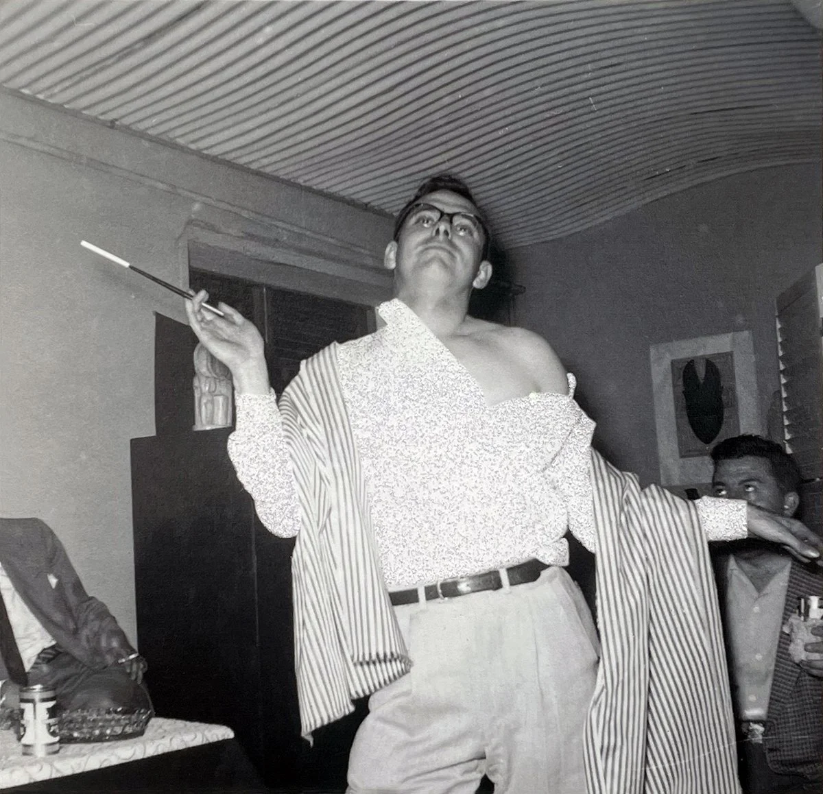 Gay men performed hypermasculinity and camp in the mid-twentieth century, before the events of the Stonewall Rebellion in the late 1960s precipitated societal and political shifts that started to make it safer to be openly queer (at least for white gay men). [16] Me, camping it up at a party engages this history and envisions camp as a celebratory practice, with Uncle Ken dancing exuberantly.