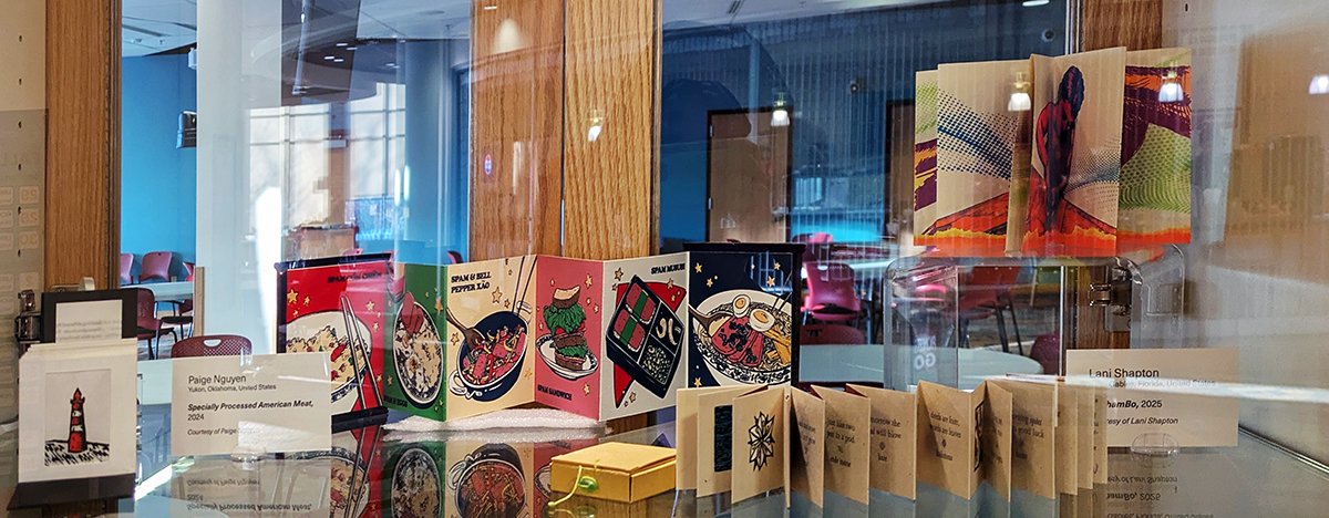 Printed Page V asks viewers (and readers) to thoughtfully engage not just with stories being told, but also with how they are being told. Communication occurs both in words themselves and in how they find their way onto the page. In the same vein, the featured books expand on the potential of printmaking, showing that it is not just a vehicle for illustration but a cornerstone in the entire construction of a book. Prints, text-based or image-based, are not just meant to be seen in a flat format, but to be experienced as spatial, dynamic storytelling mechanisms.