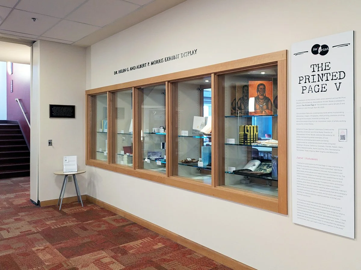 A continuation of Abecedarian Artists’ Books’ participation in the biennial Colorado Mo’Print, or Month of Printmaking, Printed Page V explores how books are an essential component of the legacy and continuing expansion of printmaking. Jurors Katherine Crowe, Special Collections Curator at the University of Denver, and Alicia Bailey, Director of Abecedarian Artists’ Books, have brought together thirty-eight works by thirty-two U.S. artists, unified by their use of traditional techniques ranging from letterpress to botanical printing.