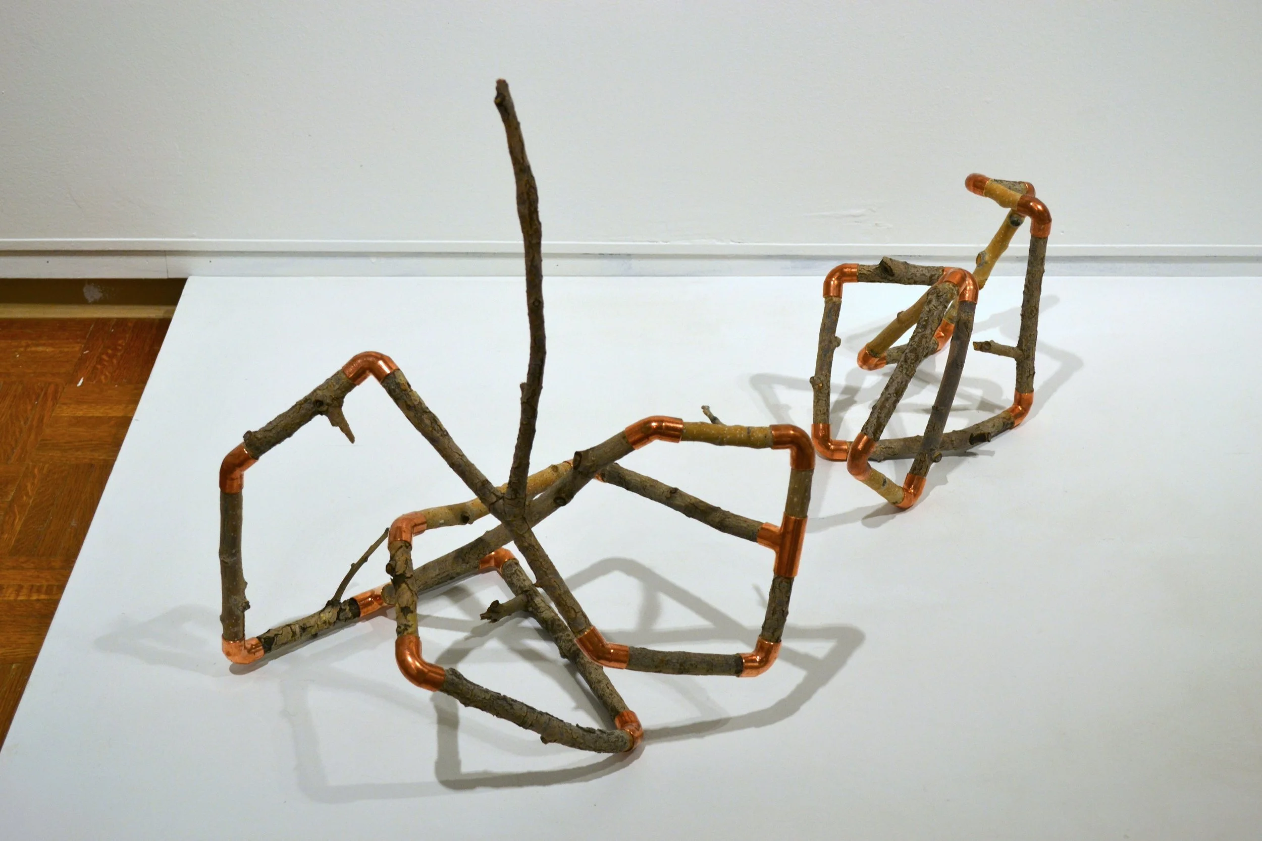 Eleanor Sabin, Untitled (Twisty Sticks 1-3), 2024-26, sticks and copper pipe fittings, dimensions variable. Image by Paloma Jimenez.