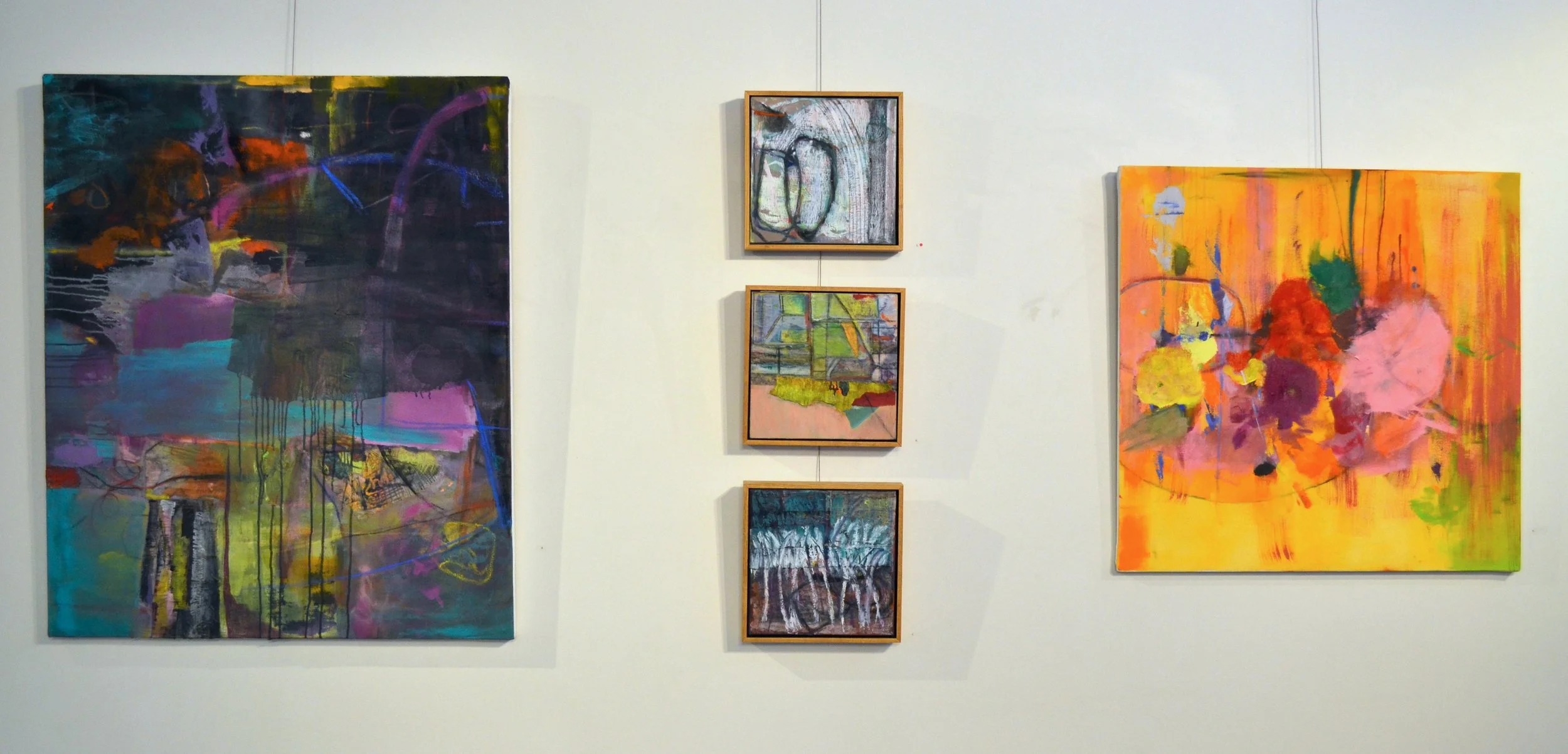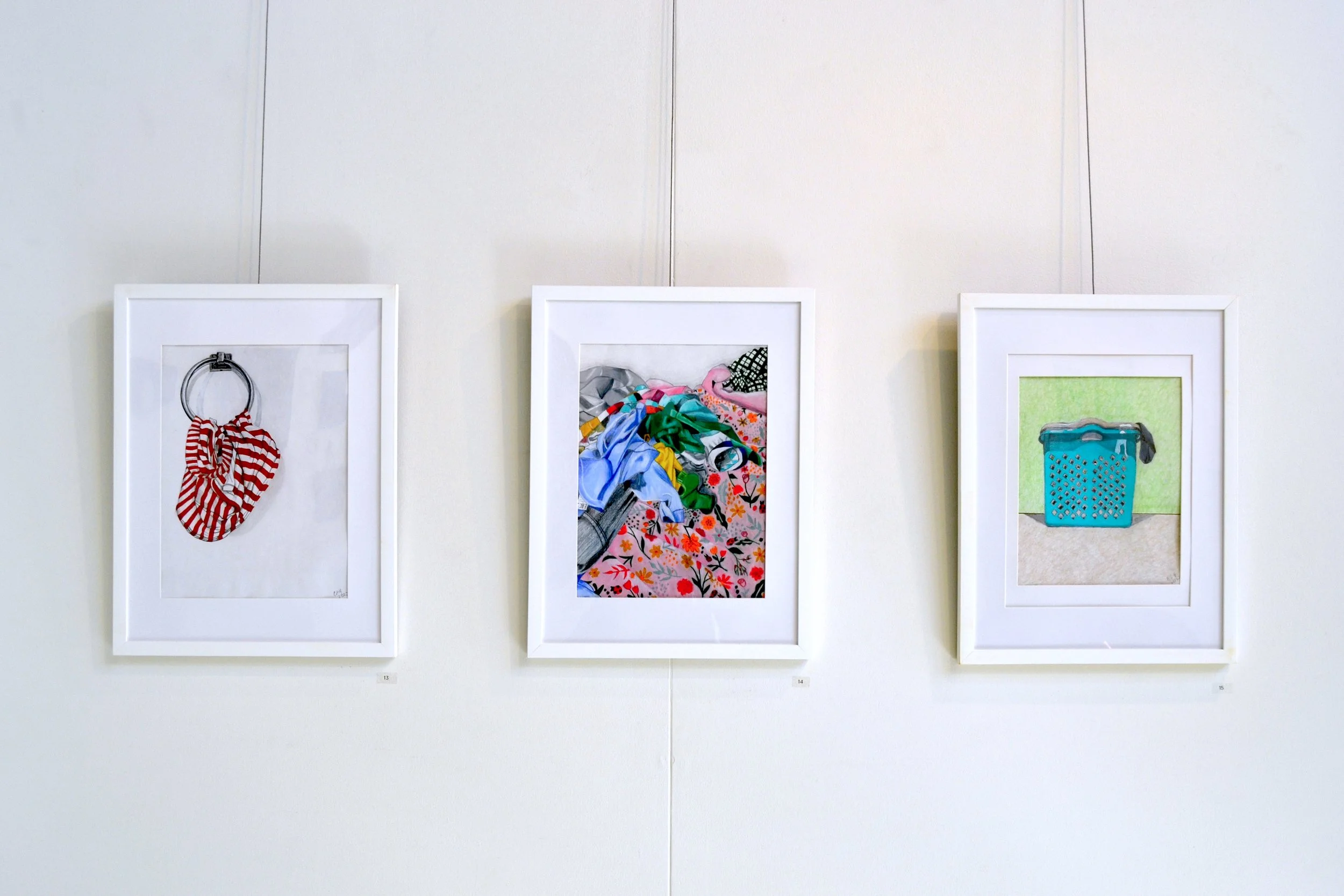 Three works by Charis Fleshner in the exhibition Women's Work is Never Done at Art Gym. Image by Paloma Jimenez.